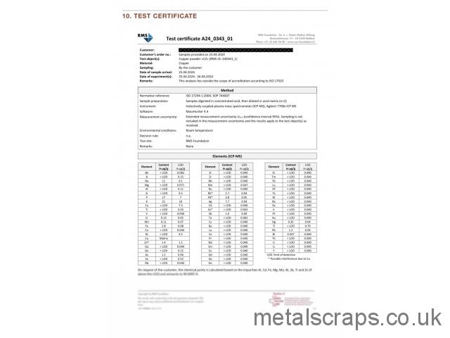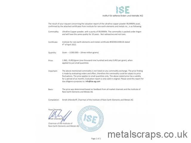 There are 3000 kg of copper powder with the purity of 99.999% available.