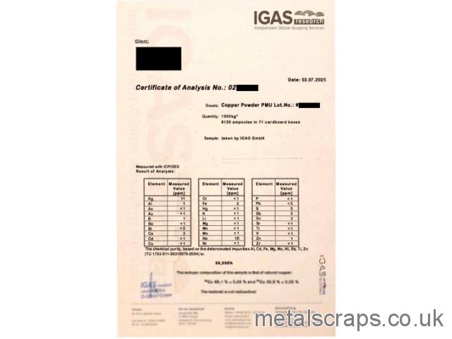 If you buy copper powder please contact us for details.