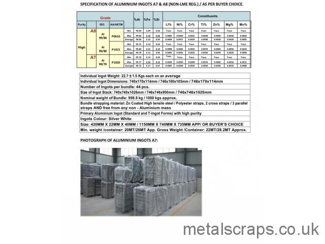 I can offer aluminium ingots A7 with a trial order of 500 MT.