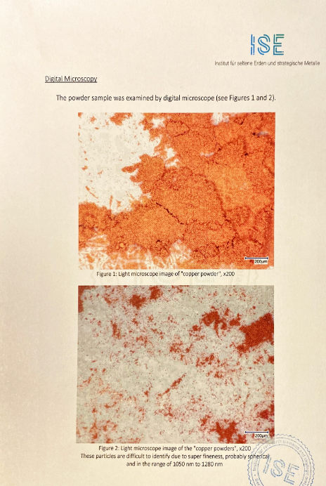 ULTRAFINE COPPER POWDER Formal Offer to Sell / Trade — Five Certified Lots | Total: 1,690 kg | Zurich & Santiago Nanotechnology-grade | Sub-micron particle size | 99.97%+ purity | European-accredited certification
